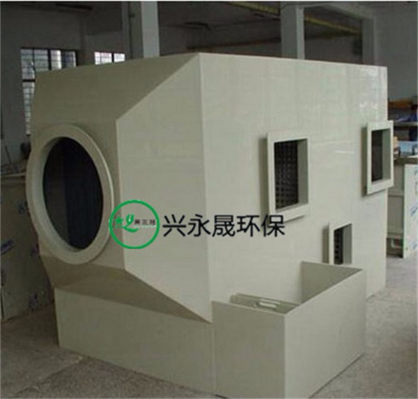 水噴淋凈化設(shè)備依據(jù)不同廢氣成分的化學(xué)性質(zhì),選擇針對(duì)性的吸收液,吸收液由循環(huán)水泵從循環(huán)水箱中吸取并送至塔內(nèi),通過噴頭均勻的噴淋到填料層中形成氣液傳質(zhì)液膜層,吸收液隨重力作用沿填料層向下流動(dòng)直至塔底循環(huán)使用。由于上升氣流和下降吸收劑在填料層中不斷接觸,所以上升氣流中溶質(zhì)的濃度越來越低,在塔體最頂部設(shè)置有波紋板,當(dāng)含有較多水霧的氣體進(jìn)入除霧層中,分子較大的水霧撞擊波紋板后形成水滴,從而達(dá)到除霧效果。潔凈的氣體最終通過排氣筒達(dá)標(biāo)排放。